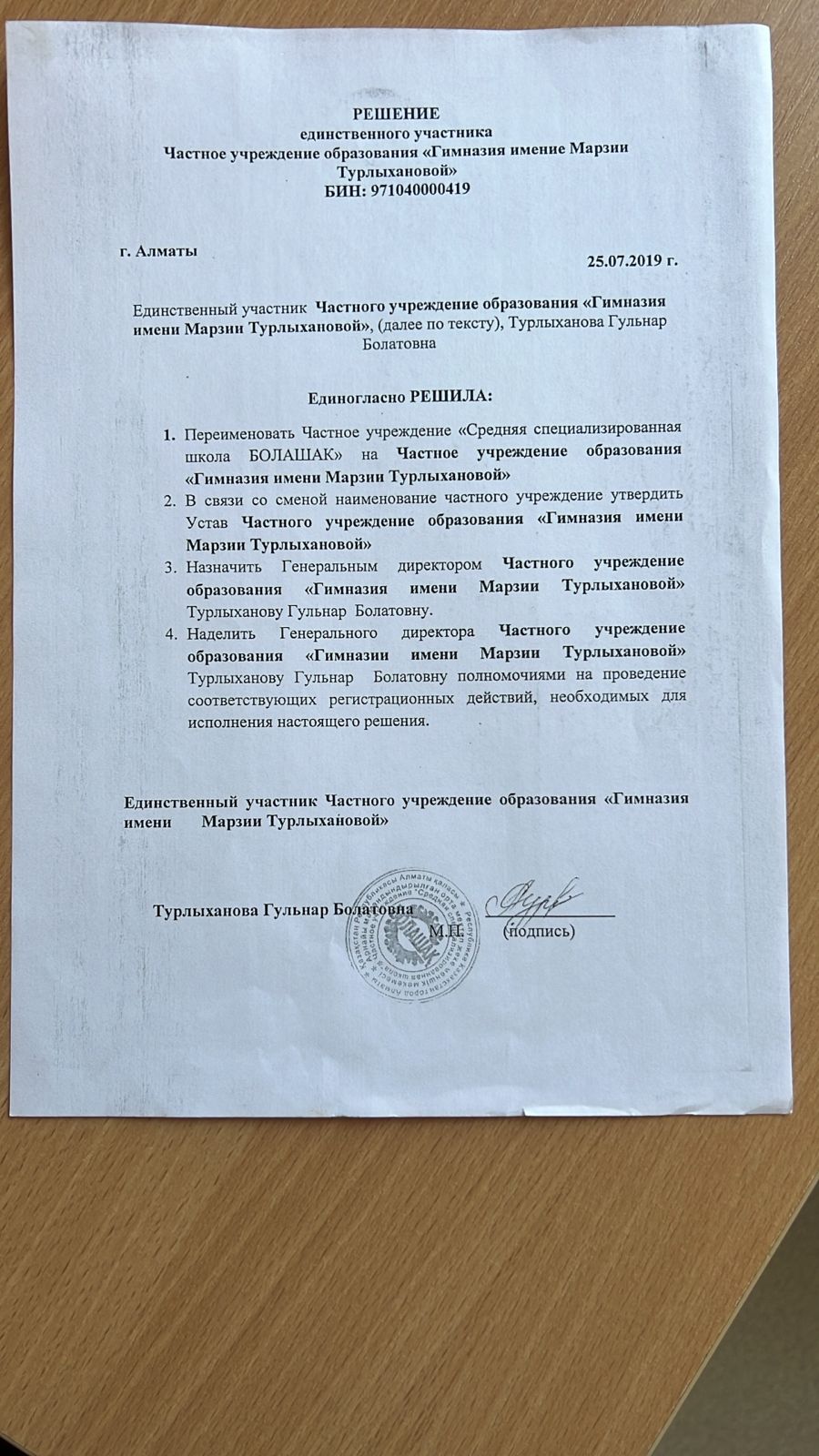 Скачать Решение о переименовании