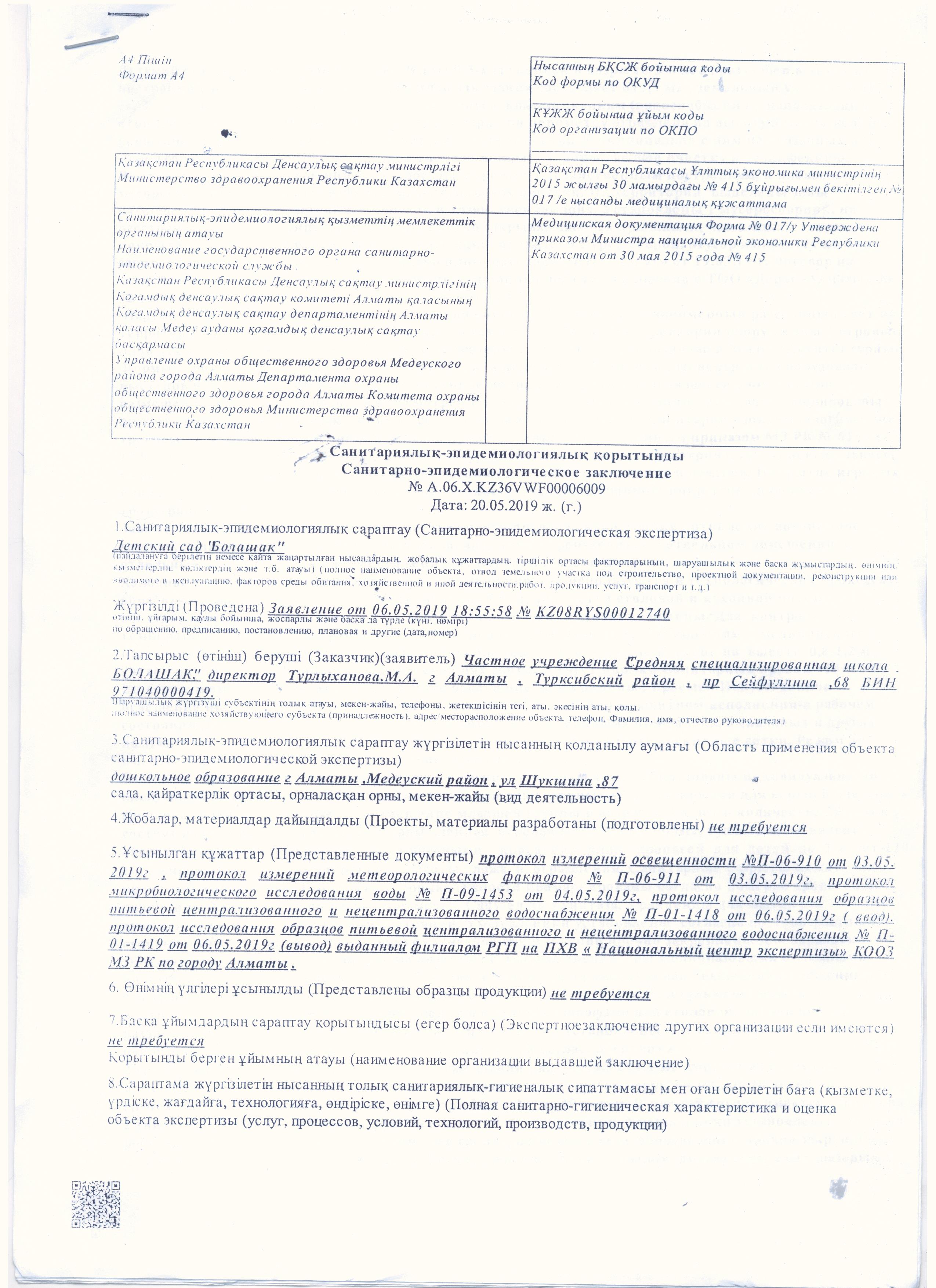Скачать Санитарно-Эпидемиологическое Заключение