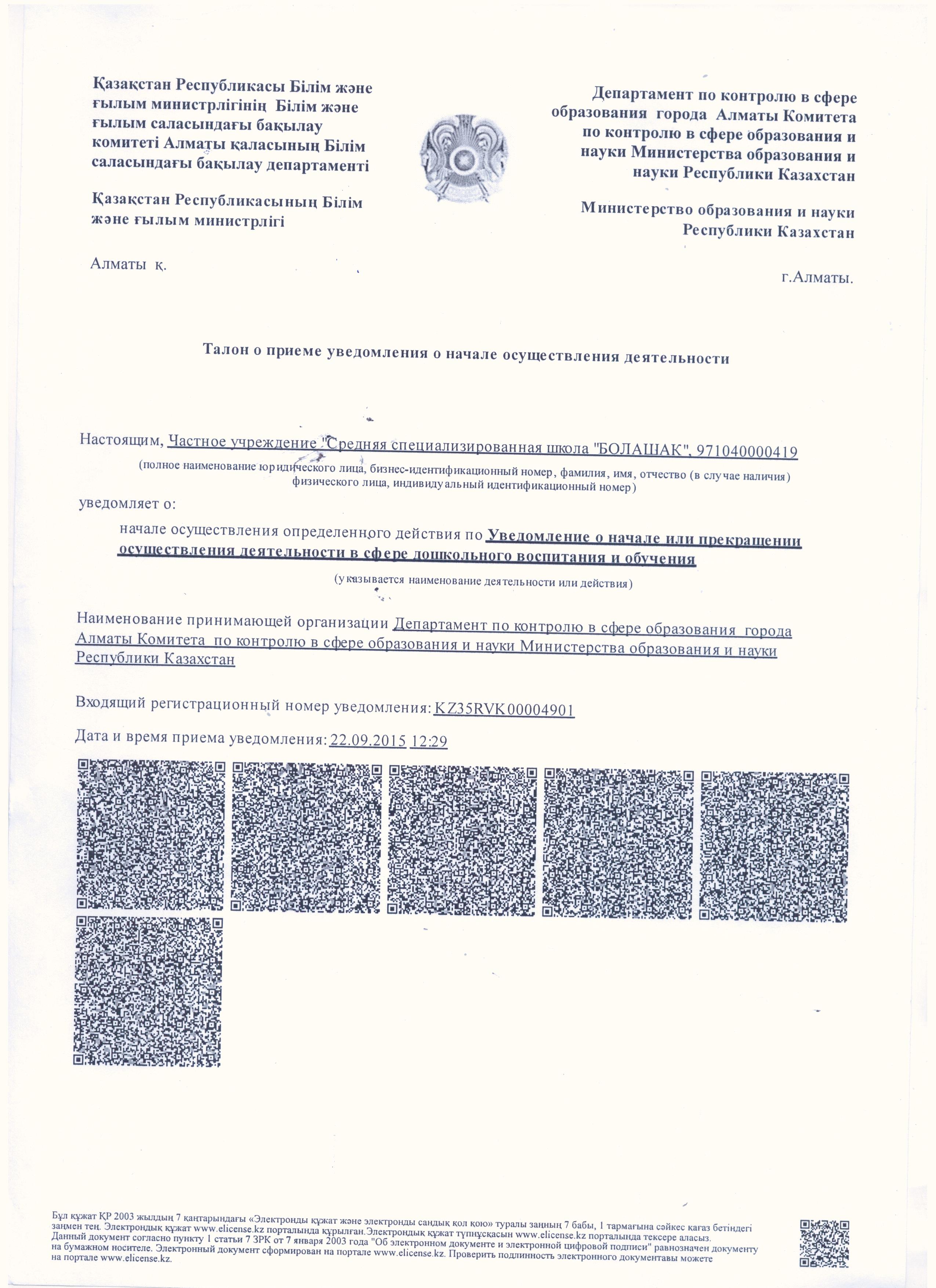 Скачать Уведомление о начале образовательной деятельности