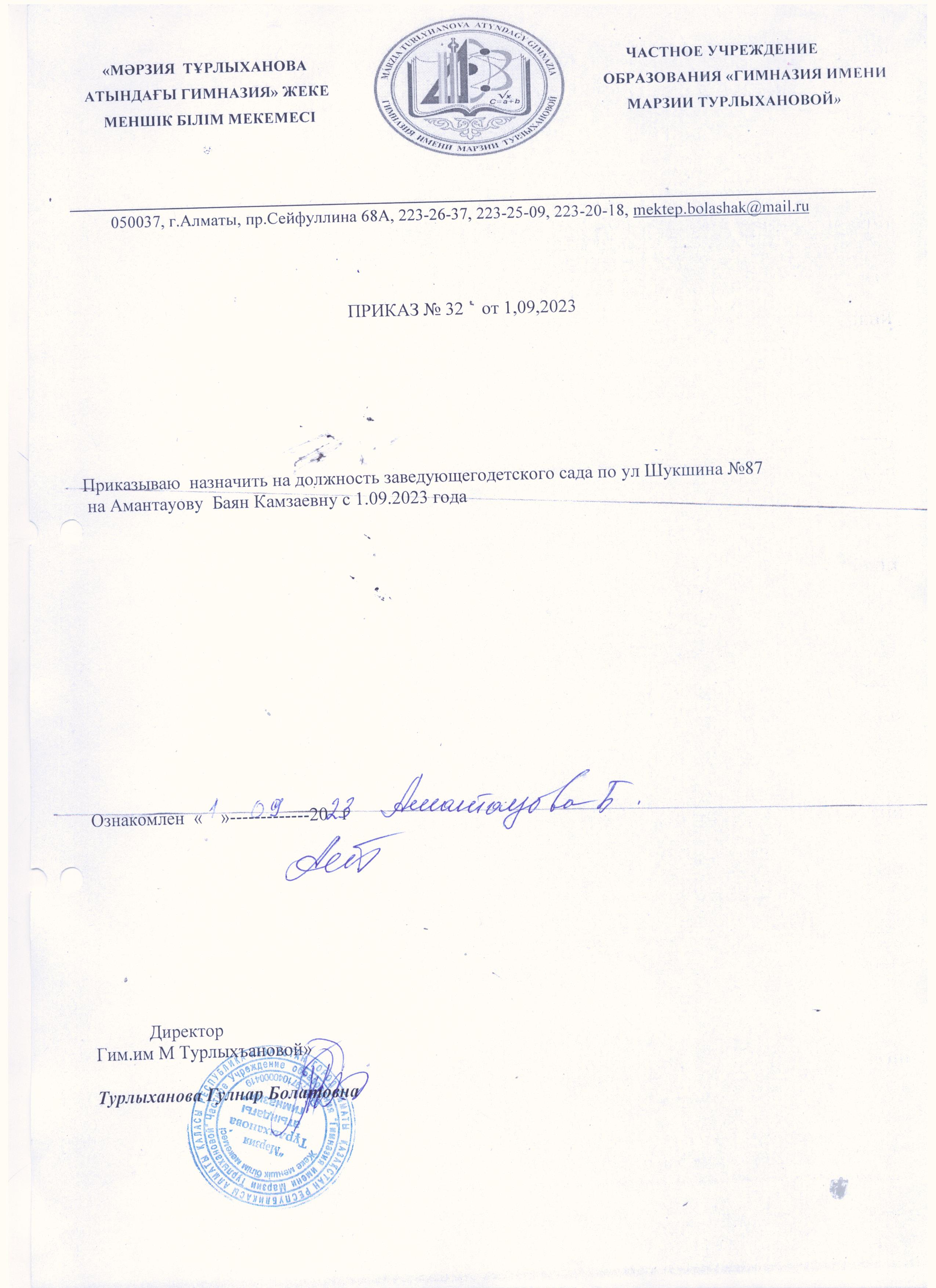 Скачать Приказ о назначении Заведующей